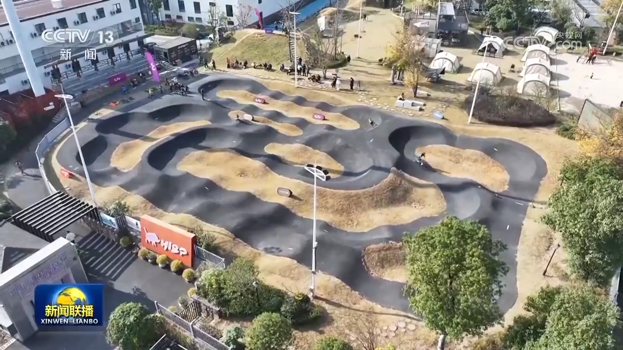 記者來到新港村的時候正趕上週末,在這個專業騎行波浪道上,一些裝備齊全的小騎手們正在追逐飛躍。