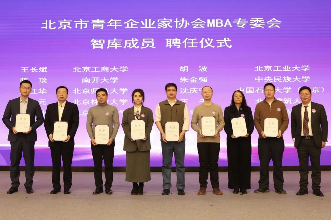 北京市青年企業家協會MBA專委會聘任多所MBA培養院校的院長和MBA中心主任擔任顧問專家和智庫成員。為進一步加強在京各校聯絡,促進商學院校友之間行業發展、就業創業和科研成果轉化,聘任部分在京高校校友會負責人為專委會MBA校友聯絡大使併為北京市青年企業家協會MBA專委會秘書處人員頒發聘書。