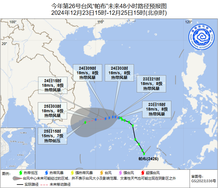 “帕布”12月23日15時預報路徑圖