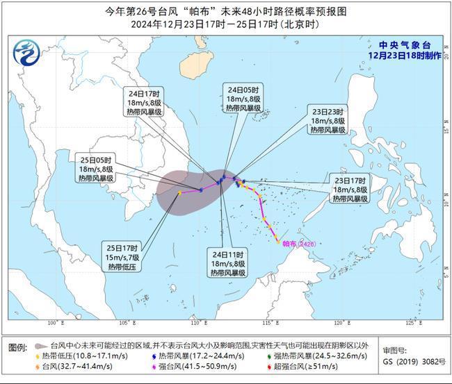 中央氣象台12月23日18時發佈颱風藍色預警: