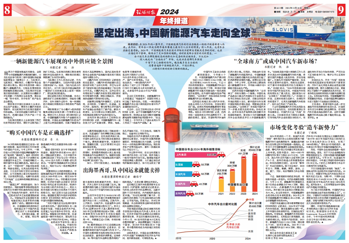 【環球時報2024年終報道】堅定出海,中國新能源汽車走向全球