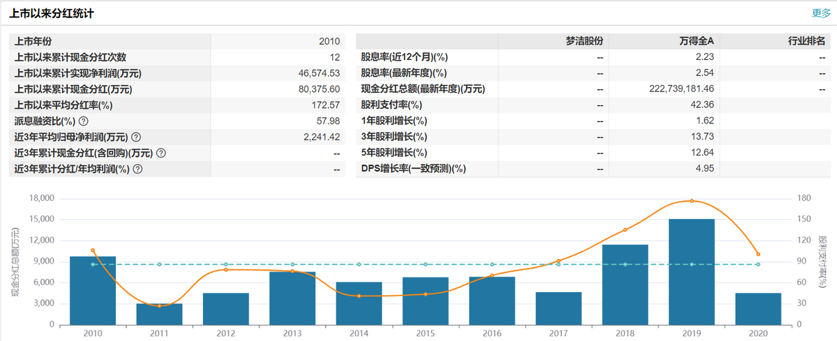 據Wind數據顯示,夢潔股份自2010上市以來,累計現金分紅金額達8.04億元,但最近三年現金分紅為零,這與該公司在2021年和2022年連續兩年出現大額虧損直接相關,特別是在2021年,夢潔股份計提的壞賬損失就高達1.48億元,另有存貨減值損失1542.21萬元,這構成該公司當年虧損1.58億元的主要來源。