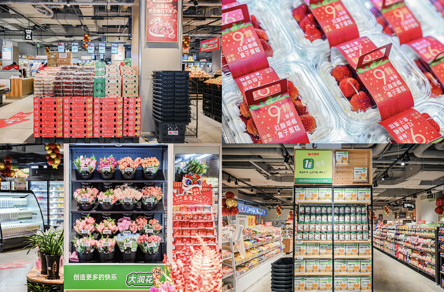 除了最大化突顯價格矩陣商品,大潤發Super進一步擴大生鮮、烘焙、熟食加工引流大單品。9.9元的鮮花、經典烘焙系列等低價優勢明顯,潤髮脆脆蛋撻、瑞士捲、榴蓮千層等以具有競爭力的價格和口味成為熱賣爆款。當季時令的智利車釐子、挪威厚切三文魚、紅顏草莓蛋糕、銀柳福桶等特色商品也紛紛上新,為顧客提供多樣品質選擇。
