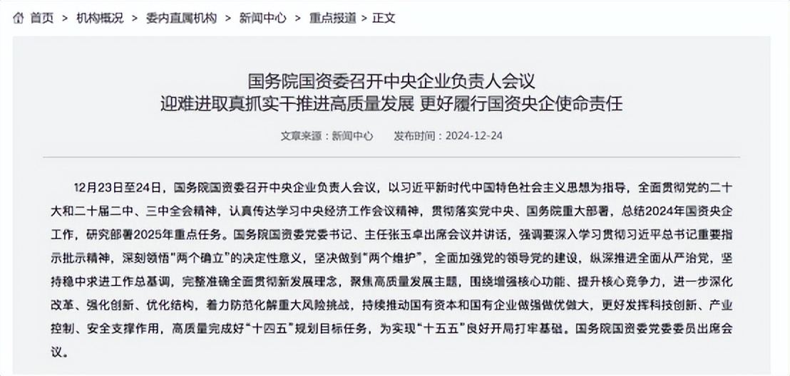 強調科學市值管理與質量提升 國資委部署2025年央企工作重點