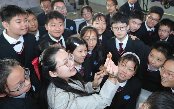 5月30日,江蘇省蘇州市吳中區光福鎮香雪海小學,核雕手藝人朱蒙佳開展非遺核雕科普教學活動。受訪者供圖