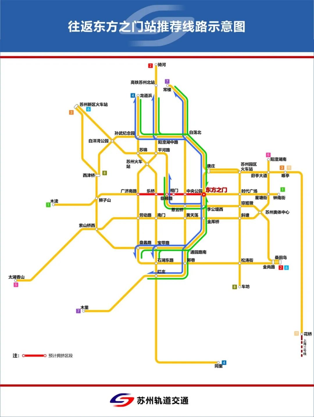 ➤ 預計跨年夜及元旦假期東方之門、相門、察院場、樂橋、蘇州火車站等車站會出現進站/出站大客流,屆時蘇州地鐵可能採取加開、跳停、多停以及車站出入口管控等措施,請予以理解並積極配合。