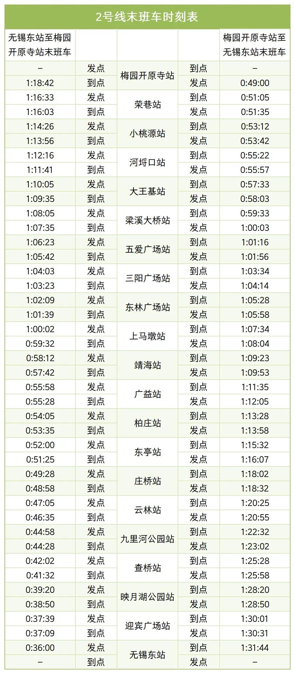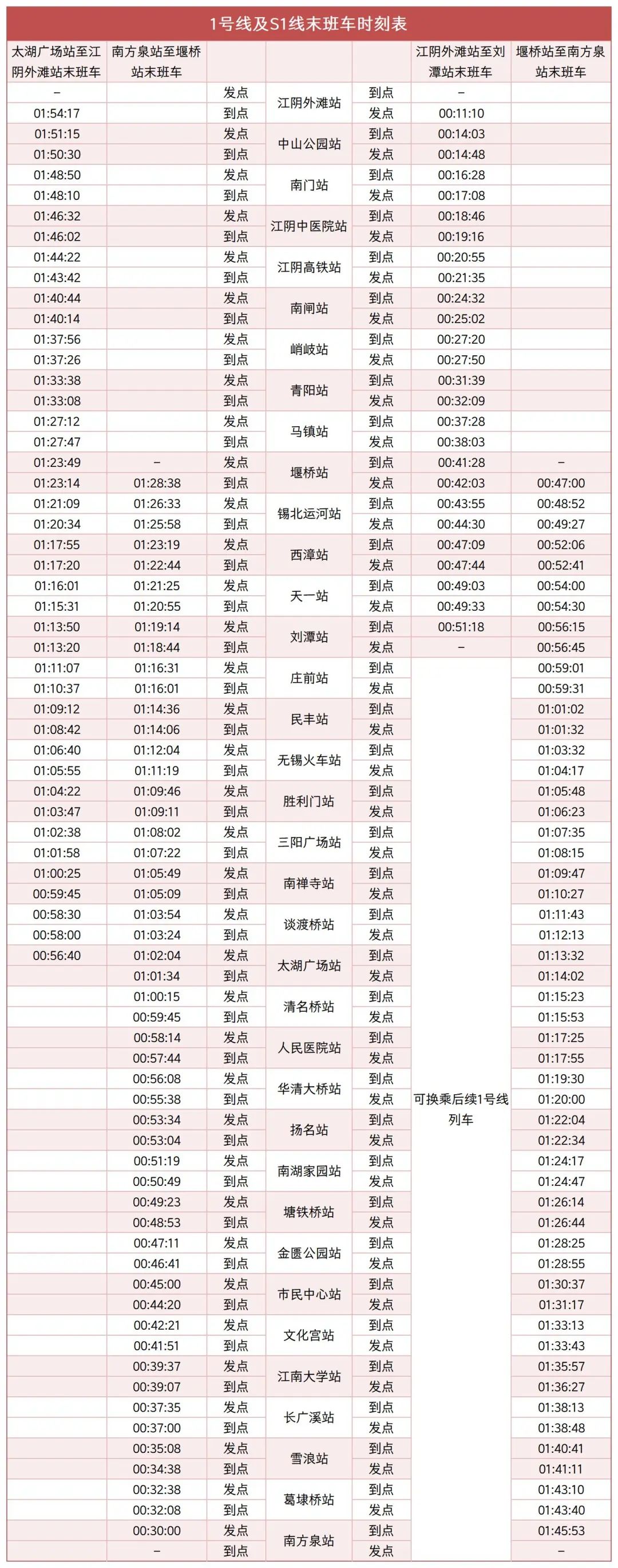 為了契合市民出行需求,無錫地鐵結合往年跨年夜客流特徵,合理匹配客流需求,延長12月31日跨年夜線網運營服務時間約2小時,延長運營期間,1、2、3、4號線行車間隔約5-10分鐘,S1線行車間隔約10-20分鐘,具體以車站實際情況為準。