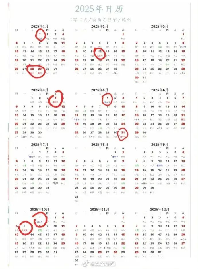再往後看全年的假期,有網友發現,2025年中秋節在10月6日,恰逢國慶長假,而端午節在5月31日,這意味着明年6月-9月除週末外,整整4個月都沒有法定節假日。