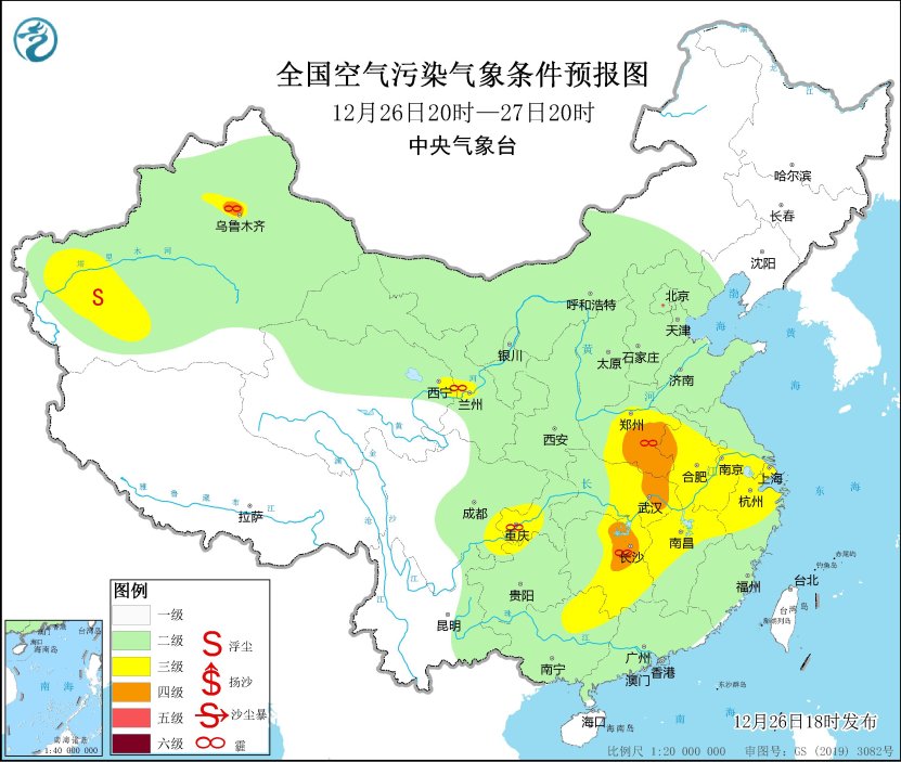 26日夜間至27日,受冷空氣傳輸影響,區域中南部有輕度霾,局地中度霾。