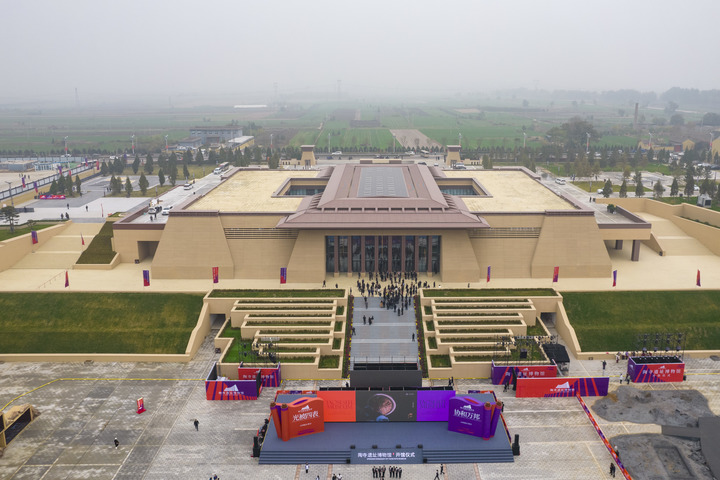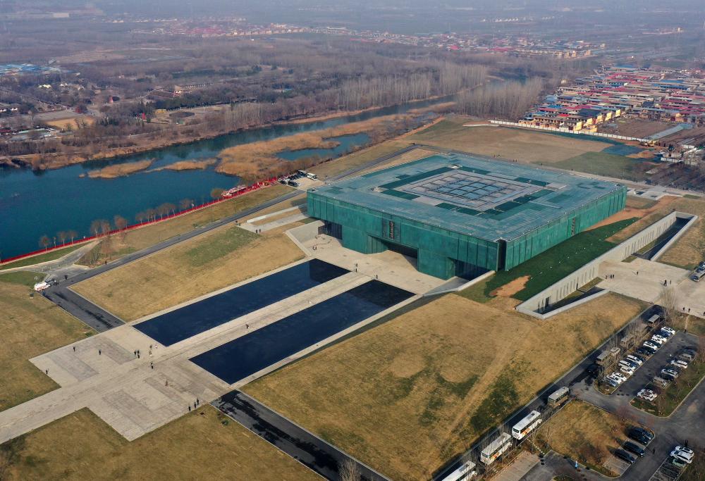 這是2024年2月26日拍攝的位於河南省安陽市的殷墟博物館新館(無人機照片)。新華社記者 李安 攝