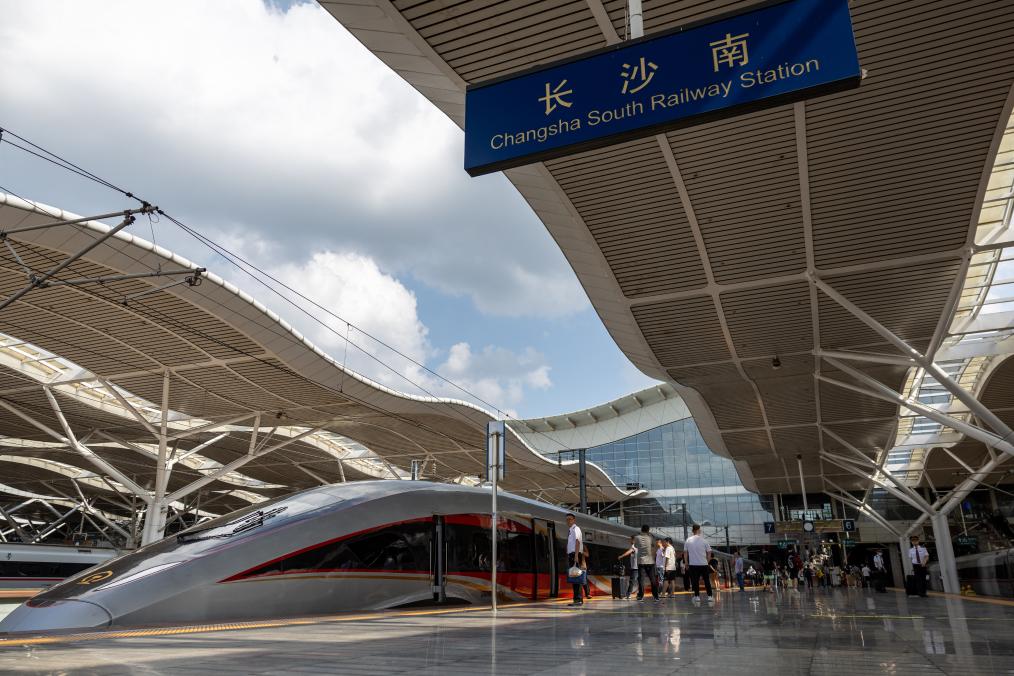 2024年6月15日,武漢至深圳北的G875次列車經停長沙南站。新華社記者 伍志尊 攝