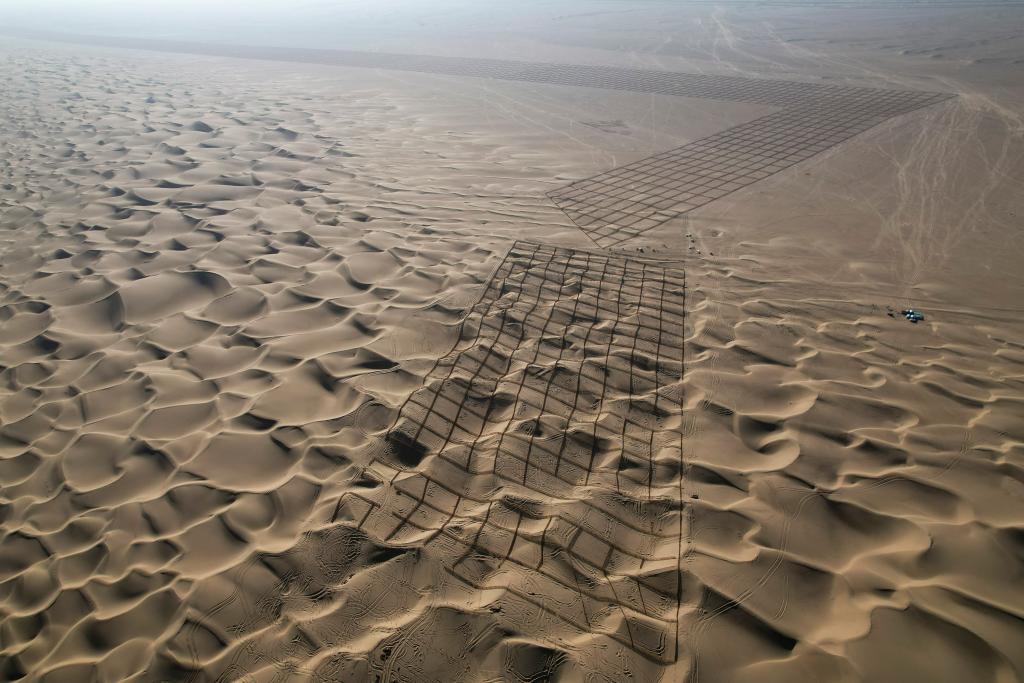 2024年11月28日,在新疆于田縣,環繞塔克拉瑪干沙漠邊緣全長3046公里的綠色阻沙防護帶實現全面鎖邊“合龍”。過去40多年,新疆依託國家“三北”防護林工程,在塔克拉瑪干沙漠周邊一點點增添綠色。數十萬人不屈不撓搏鬥沙海,終在大漠邊緣築起一道綠色長城。