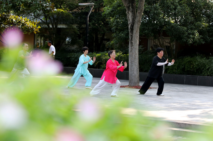 2024年8月8日,市民在江蘇蘇州公園鍛鍊。新華社發(杭興微 攝)