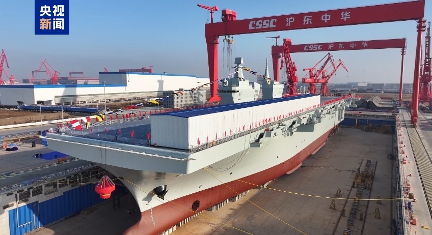 12月27日上午,由我國自主研製建造的076兩棲攻擊艦首艦下水命名儀式在上海滬東中華造船廠舉行。
