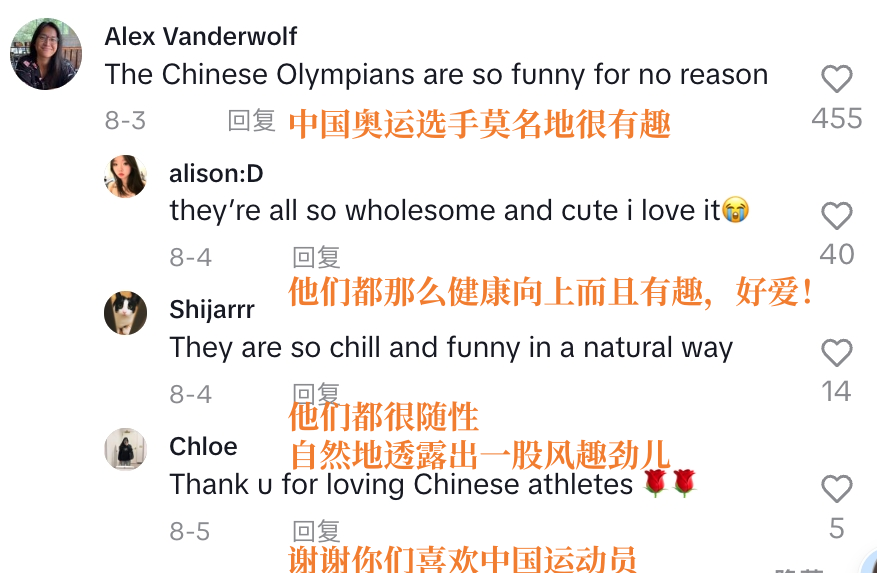 鄭欽文球場上霸氣的形象和場下軟萌的性格,讓許多TikTok網友大呼意外,直呼中國的奧運選手又隨性、又可愛。