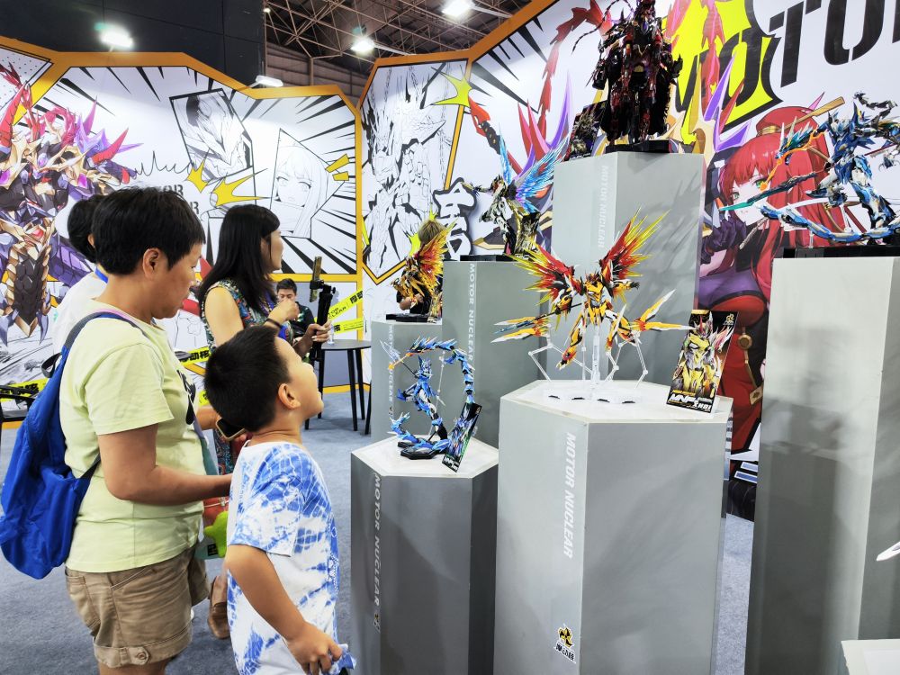 東莞漫博會上,中國風機甲動漫品牌摩動核的展品吸引觀眾。新華社記者 鄧瑞璇 攝