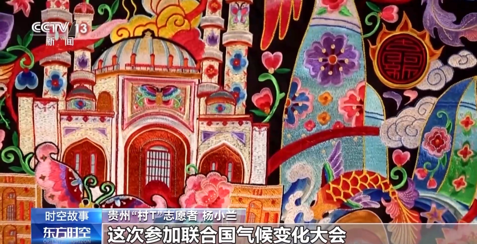 *貴州“村T”志願者 楊小蘭:*這幅圖是我們這次參加聯合國氣候變化大會時送給參會嘉賓的一個禮物。他們都喜歡這幅畫,爭着想要這幅畫拿來做紀念。我們一走出去整個會場掌聲不斷,所有的人都圍着我們轉,一直跟着我們走,我們走到哪裏那些人羣就湧到哪裏。