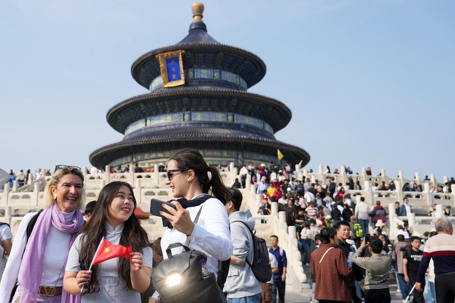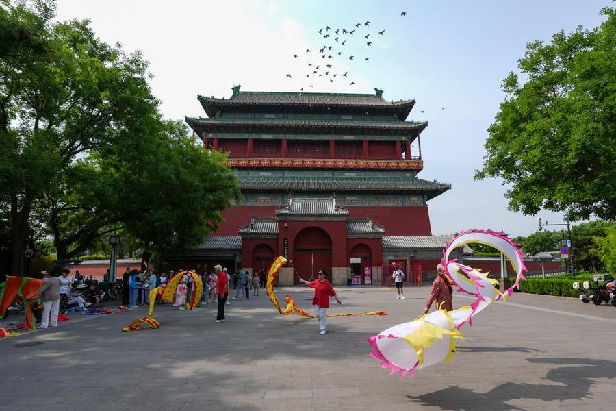 熙熙攘攘的人羣走在北京中軸線上,感受着對稱佈局的建築之美,也和濃郁的文化氛圍、升騰的城市活力撞個滿懷。