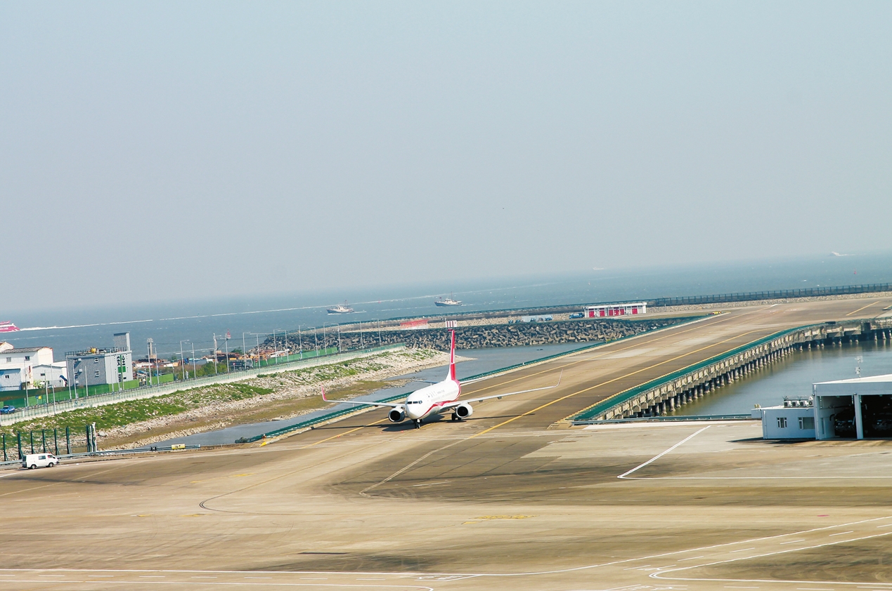 從陳穎雄的辦公室裏可以清楚地看到外面機場的每個角落:停機坪、滑行道、跑道、瞭望塔……説到機場當初興建時的情況,他指着外面的建築如數家珍:“你看到我們左手邊的這座山,30多年前,這山直接連着大海,我們所在的地方,以及我們看到機場的大部分都在海里,只有瞭望塔那裏不是海,當年那裏是海中的一塊石頭。”