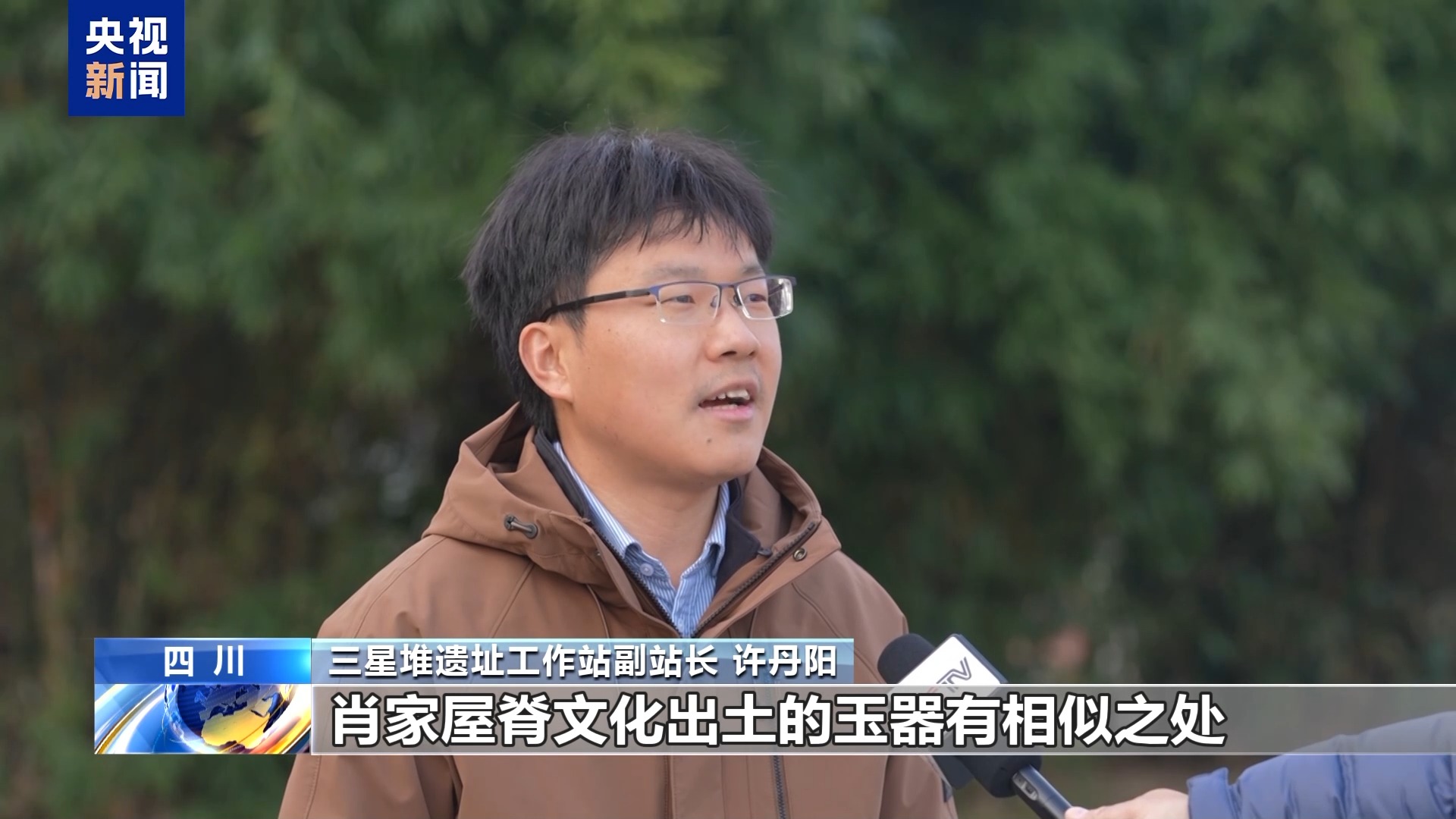 *三星堆遺址工作站副站長 許丹陽:*有一件玉人像,和長江中游地區的肖家屋脊文化出土的玉器有相似之處,表明與長江中游地區也有聯繫。新發現的這些玉石器,不僅增加了我們對三星堆玉石器種類的認識,而且也豐富了我們對三星堆與周邊地區文化交流的認識。表明以三星堆遺址為代表的古蜀文化與周邊地區同時期的文化存在着廣泛交流,也是中華文明多元一體格局的重要實證。