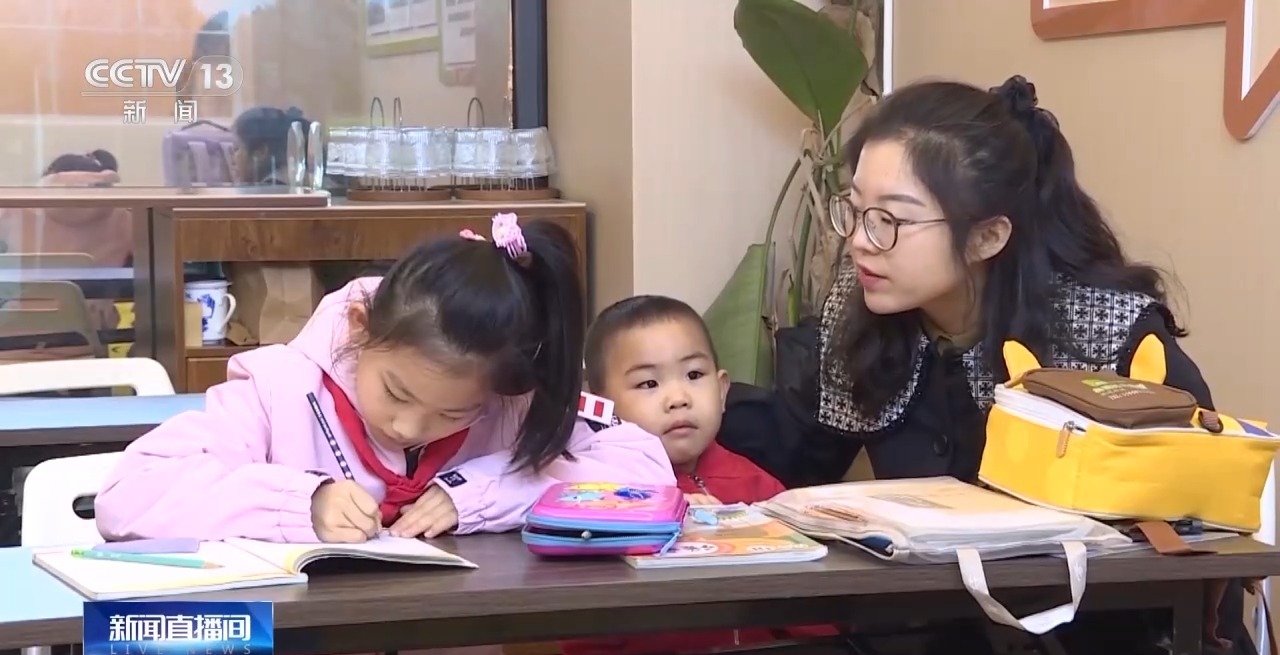 社區居民李女士有兩個孩子,女兒上小學,兒子才兩歲。她平時要上班,丈夫在外地工作。她把兩歲的兒子送到小區裏的托育園。更為方便的是,托育機構還辦起了託管班,上小學的女兒放學後還可以來這裏吃飯、寫作業。李女士下班後,來托育園接兩個孩子一起回家。