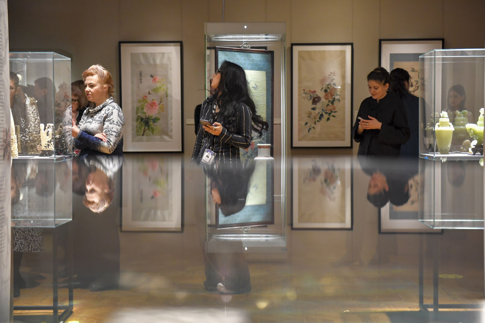 12月4日,人們在俄羅斯首都莫斯科舉辦的中國傳統文化展上參觀。