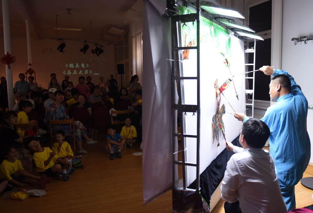 7月9日,在奧地利維也納,小朋友們在“中華文化大樂園——維也納營”開營儀式上觀看皮影戲表演。“中華文化大樂園——維也納營”教授中國語言、技藝、傳統文化課程,讓孩子們領略中華文化的魅力。