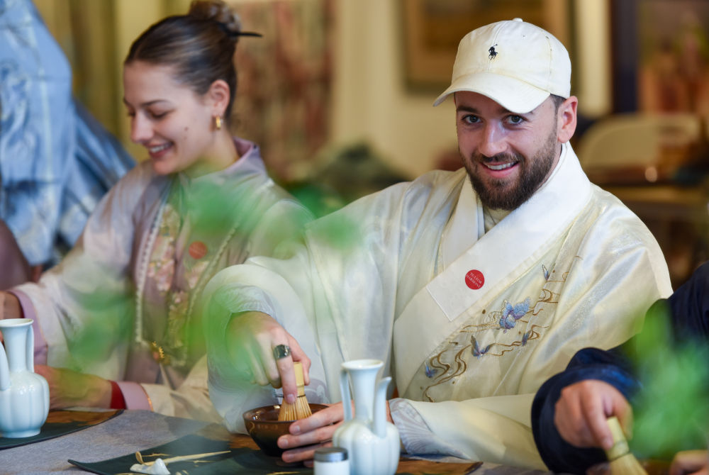 5月18日,新西蘭奧克蘭的民眾在“茶和天下·雅集”活動上體驗中國宋代點茶。