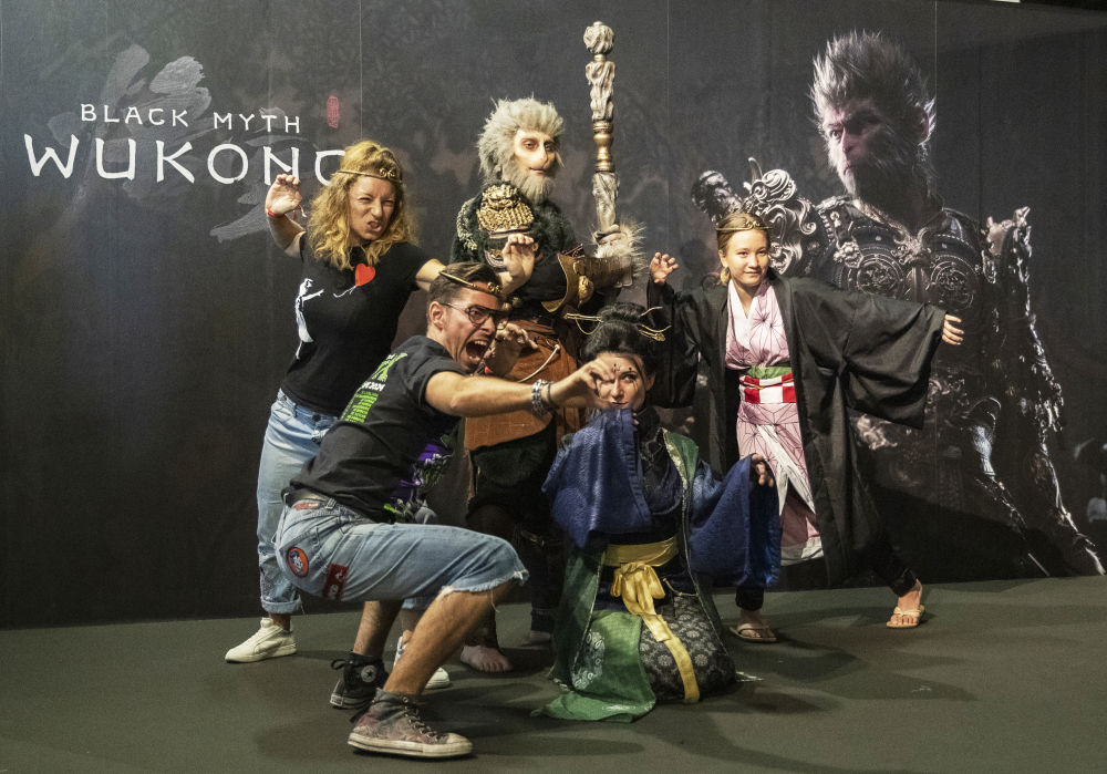 8月22日,人們在德國2024年科隆國際遊戲展《黑神話:悟空》拍照區拍照。中國遊戲企業積極參加2024年科隆國際遊戲展,推出的遊戲產品受到國際遊戲愛好者的關注和喜愛。
