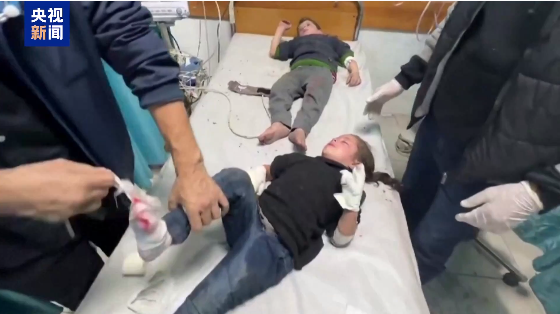 當地時間12月26日,加沙地帶卡邁勒·阿德萬醫院附近。圖片來源:央視新聞客户端