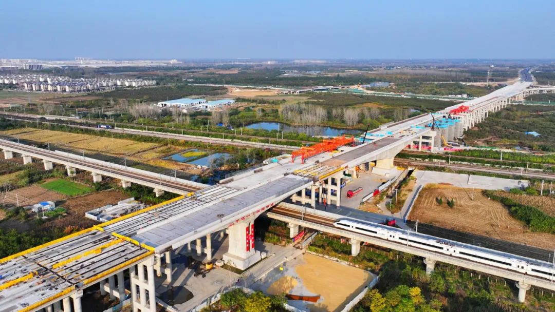滁合周高速涉鐵標轉體完成畫面。(合肥市交通運輸局供圖)