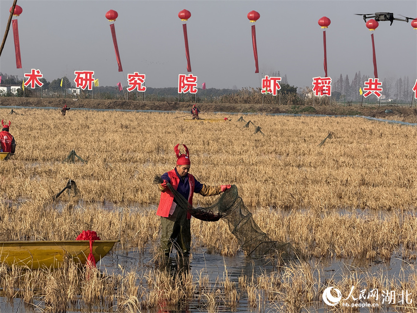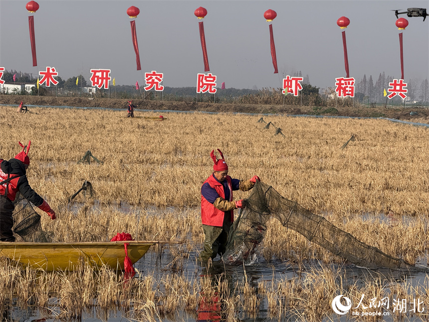 據介紹,為打破小龍蝦季節性壁壘,湖北省小龍蝦產業技術研究院聯合中科院水生所等7家科研院所,重點攻關“四季有蝦”核心技術,利用池塘底部秋冬季節較好的蓄熱能力,和四季常青、適宜小龍蝦養殖的水生植物組合,探索了冬蝦養殖模式並制定了技術標準。目前,潛江“四季有蝦”池塘精養模式養殖面積1.4萬畝。2024年,潛江市在後湖管理區探索冬季稻田養蝦模式300畝,成功實現了在蝦稻田裏養出高品質冬蝦。“2025年還將開展大面積推廣冬季稻田養蝦。”楊運剛對記者説。