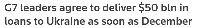 今年10月,七國集團領導人就以俄羅斯被凍結資產所產生的收益作為抵押、向烏克蘭提供500億美元貸款達成共識,承諾將在今年年底前向烏方提供貸款,用於支持烏方財政、軍事和重建。此外,作為七國集團貸款計劃的一部分,美國承諾將向烏克蘭發放200億美元貸款。