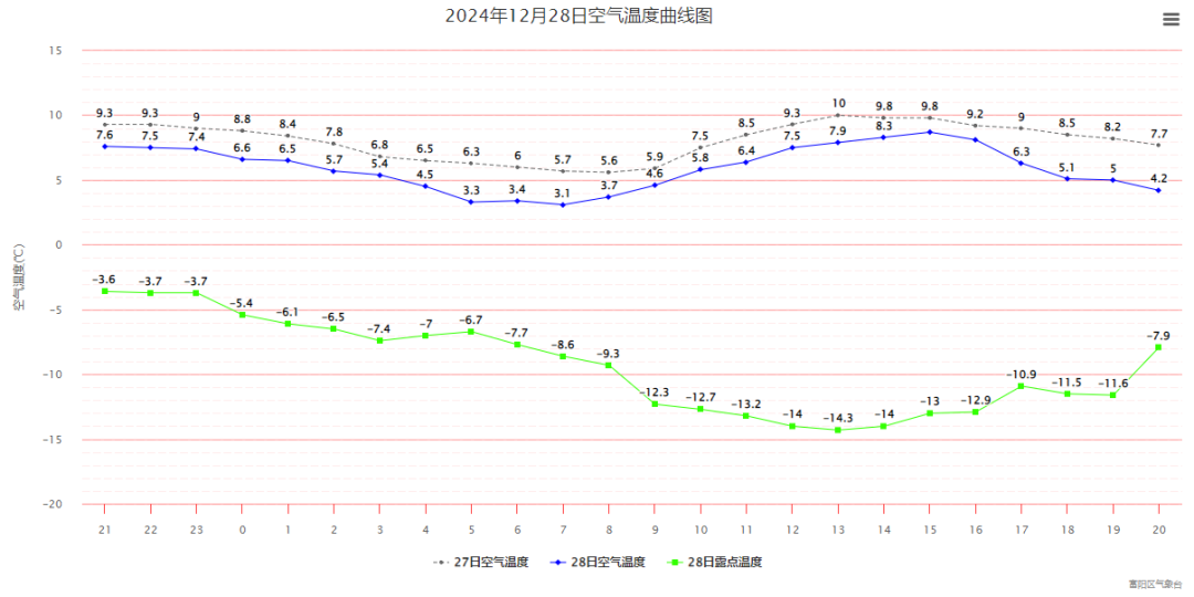 不過更讓人詫異的是,昨天13時,主城區的露點温度一度降至-14.3℃。看到這個數字,你有沒有瞬間感覺寒從腳底起?