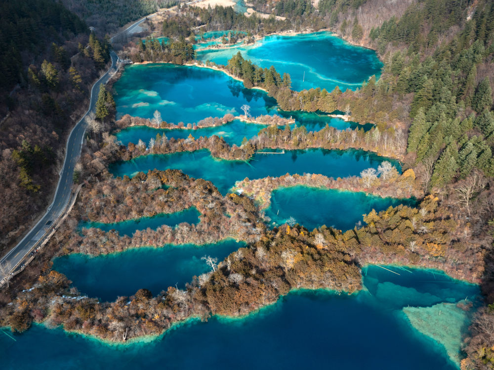 這是12月7日拍攝的九寨溝景區一角(無人機照片)。
