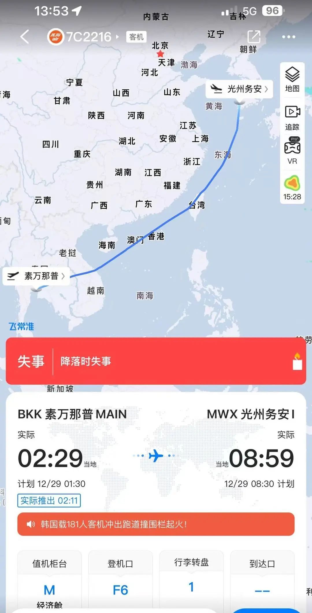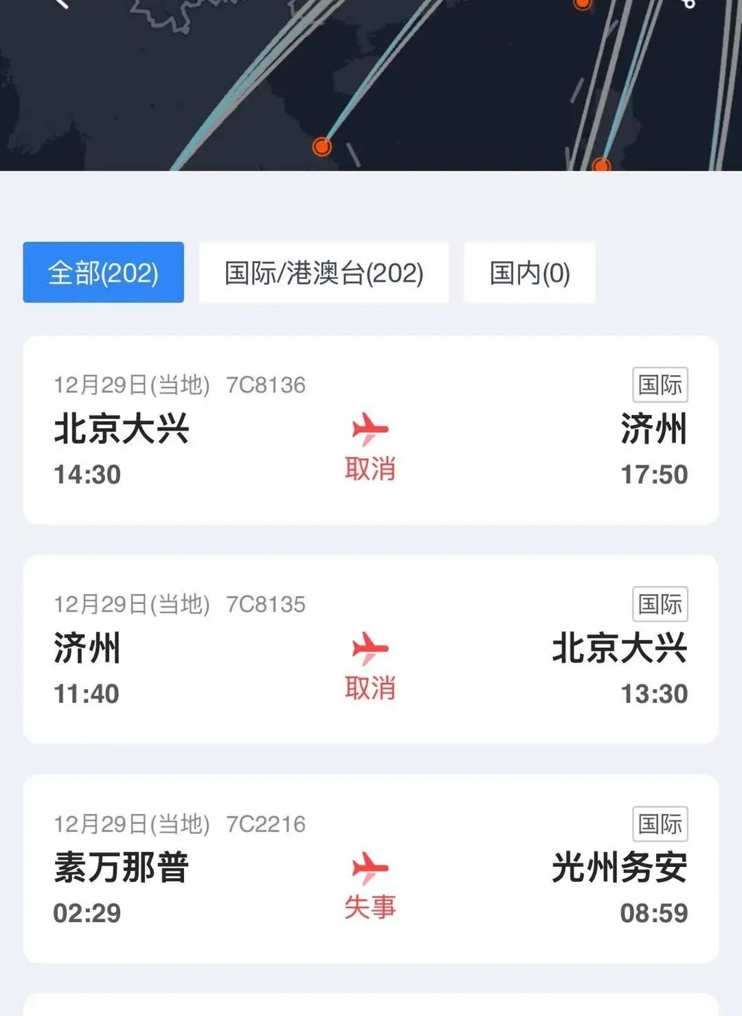 記者注意到,發生事故的濟州航空7C2216航班,按照原計劃,在抵達光州務安後,將執飛於11:40從濟州飛往北京大興的航班。