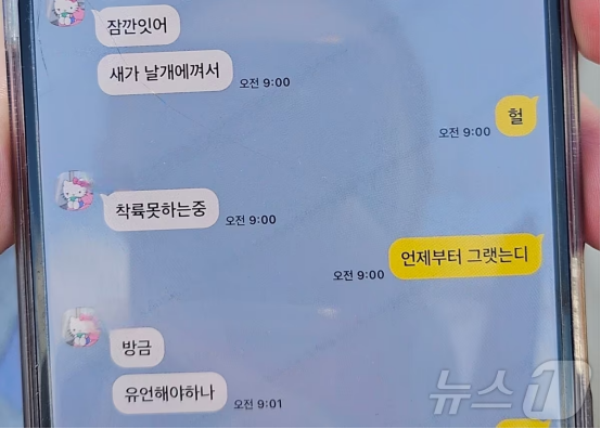 韓國客機碰撞起火事故中一乘客與家人的聊天記錄。圖源:韓國“News1”新聞網站