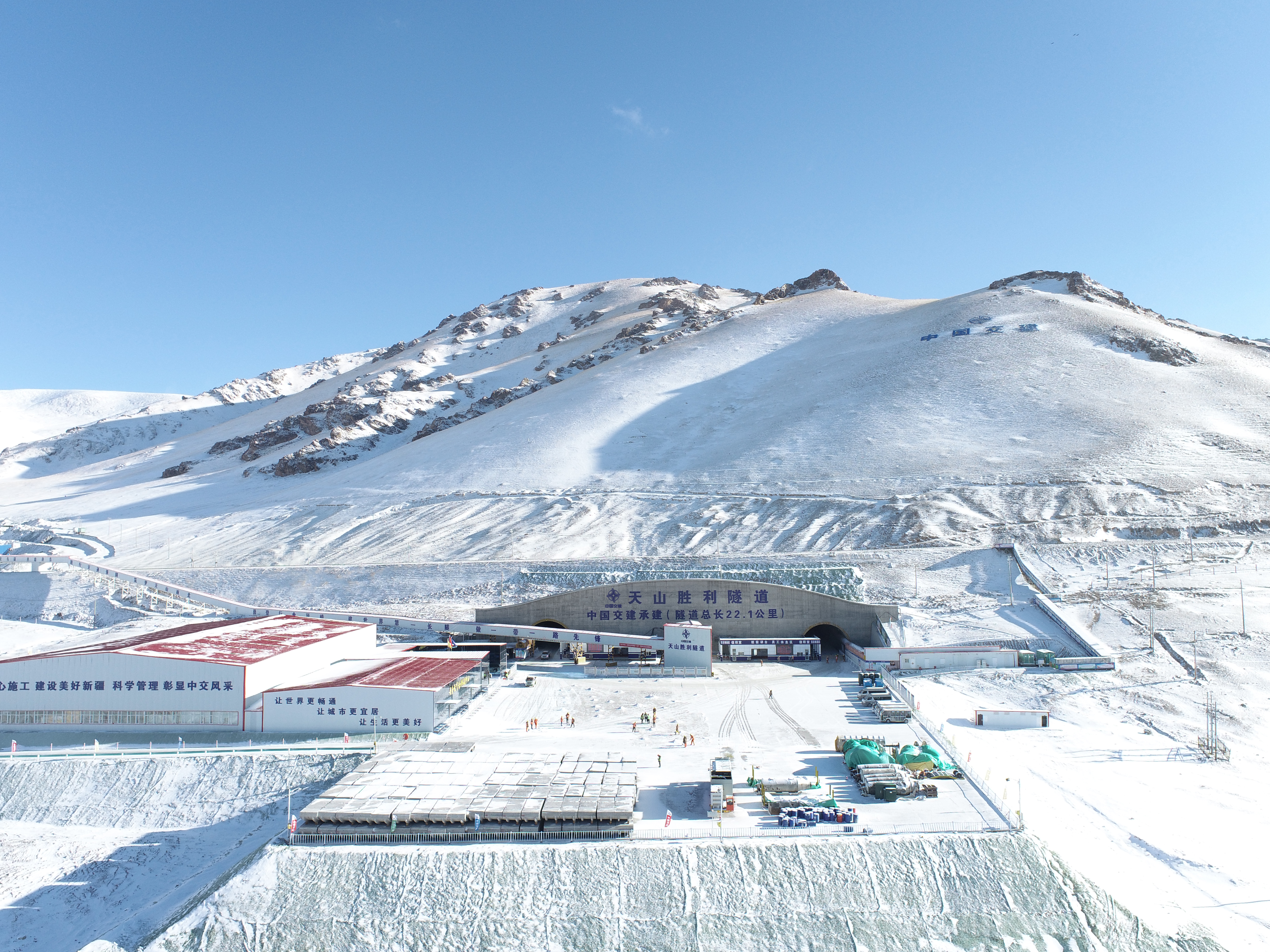 天山勝利隧道是G0711烏魯木齊至尉犁高速公路控制性工程,是國內在建高速公路中典型的特長高寒、高海拔公路隧道,地質環境複雜,施工難度大,首創“三洞+四豎井”施工法,服務隧道採用TBM硬巖掘進機施工,為左右雙主洞開闢輔助工作面,實現“長隧短打”,有效節約施工工期,僅用52個月打通天山。