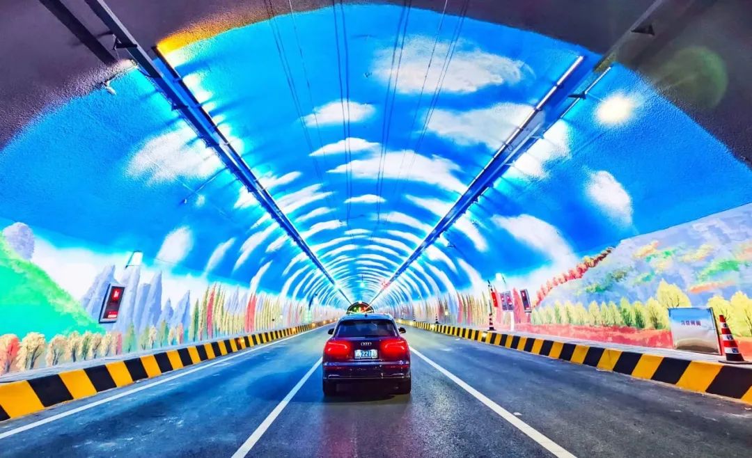 小龍門隧道為跨京冀界特長隧道,北青報記者駕車體驗發現,施工方在隧道進出京三公里處均噴塗了200米長的山水畫。“按照相關規定,特長隧道適宜設置‘疲勞喚醒區’,因小龍山隧道臨近靈山山脈,為和周圍景緻協調,我們特別邀請了專業美術教師,繪製了山水畫。用亮麗的顏色並輔以燈光,避免司機疲勞駕駛。”北京建工市政路橋集團、京蔚高速項目經理葛晨雨介紹。