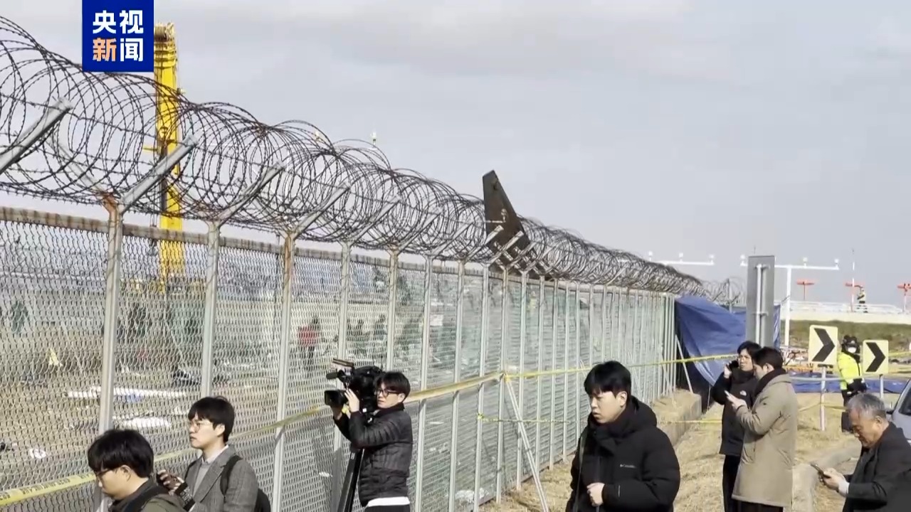 *總枱記者 唐鑫:*這裏就是濟州航空空難發生的現場。順着我手指的方向,是目前我們唯一能夠看到的飛機尾部殘骸。我現在所在的位置距離事故發生現場大概有幾百米的距離。