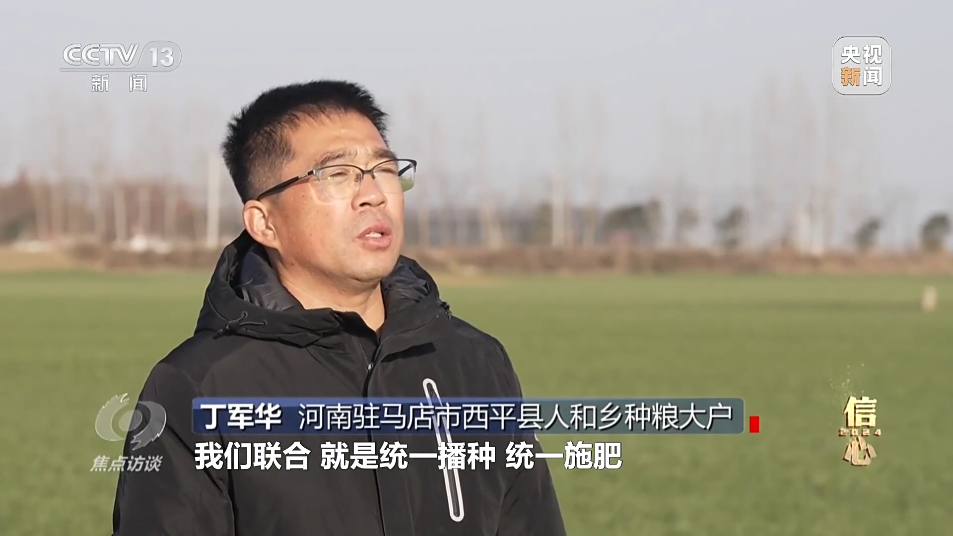 河南駐馬店市西平縣仁和鄉種糧大户 丁軍華:“我們聯合就是統一播種、統一施肥、統一管理、統一打藥、統一購銷和統一收割,做到了‘六統一’,共同抱團去跟廠家談判、爭取最低的價格。這一次小麥播種,我們從黑龍江引進大型氣吸型播種機,地少了它不來,用這種播種機,一畝地比普通播種機增產15%以上。”