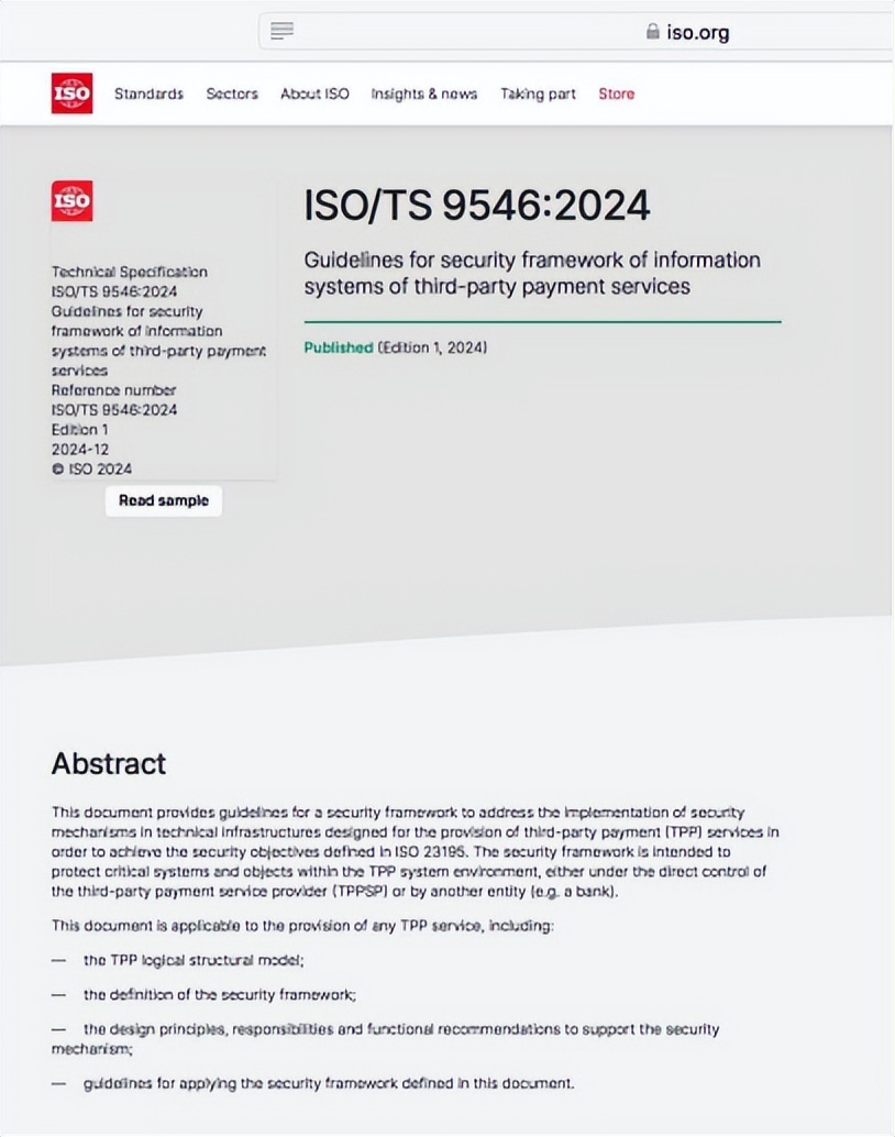 【環球網財經報道 記者譚雅文】記者從網聯清算公司方面瞭解到,日前,在中國人民銀行和全國金融標準化技術委員會(“金標委”)的指導下,網聯清算公司牽頭制定的國際標準《第三方支付服務信息系統安全框架指南》(ISO/TS 9546)正式發佈,這標誌着我國金融標準化“走出去”取得新突破。