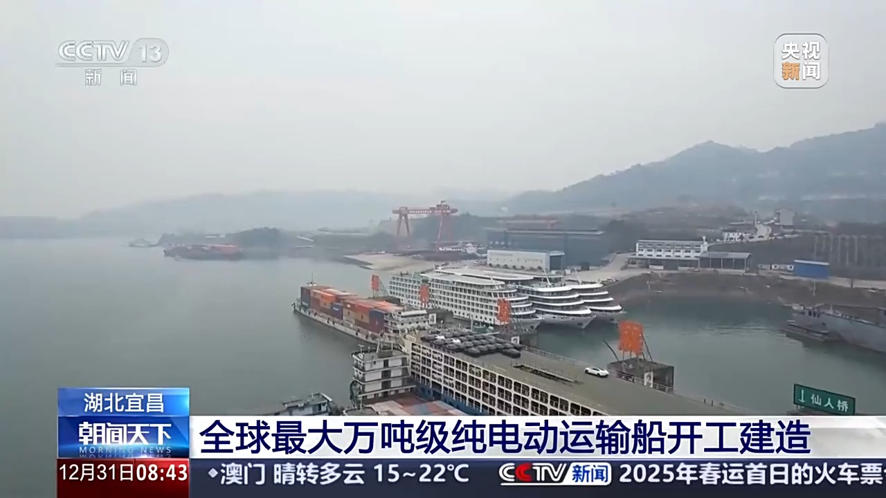 在宜昌船舶工業園的一家造船企業,一艘由電池供電的集裝箱船正在建造中。而這也是該船業公司2024年接下的第40艘新能源船舶建造訂單,再過4個月它就將建成交付,“投身”長江航運之中。