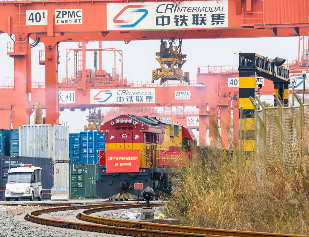 2024年西部陸海新通道班列第10000列發車。(北部灣港集團供圖)