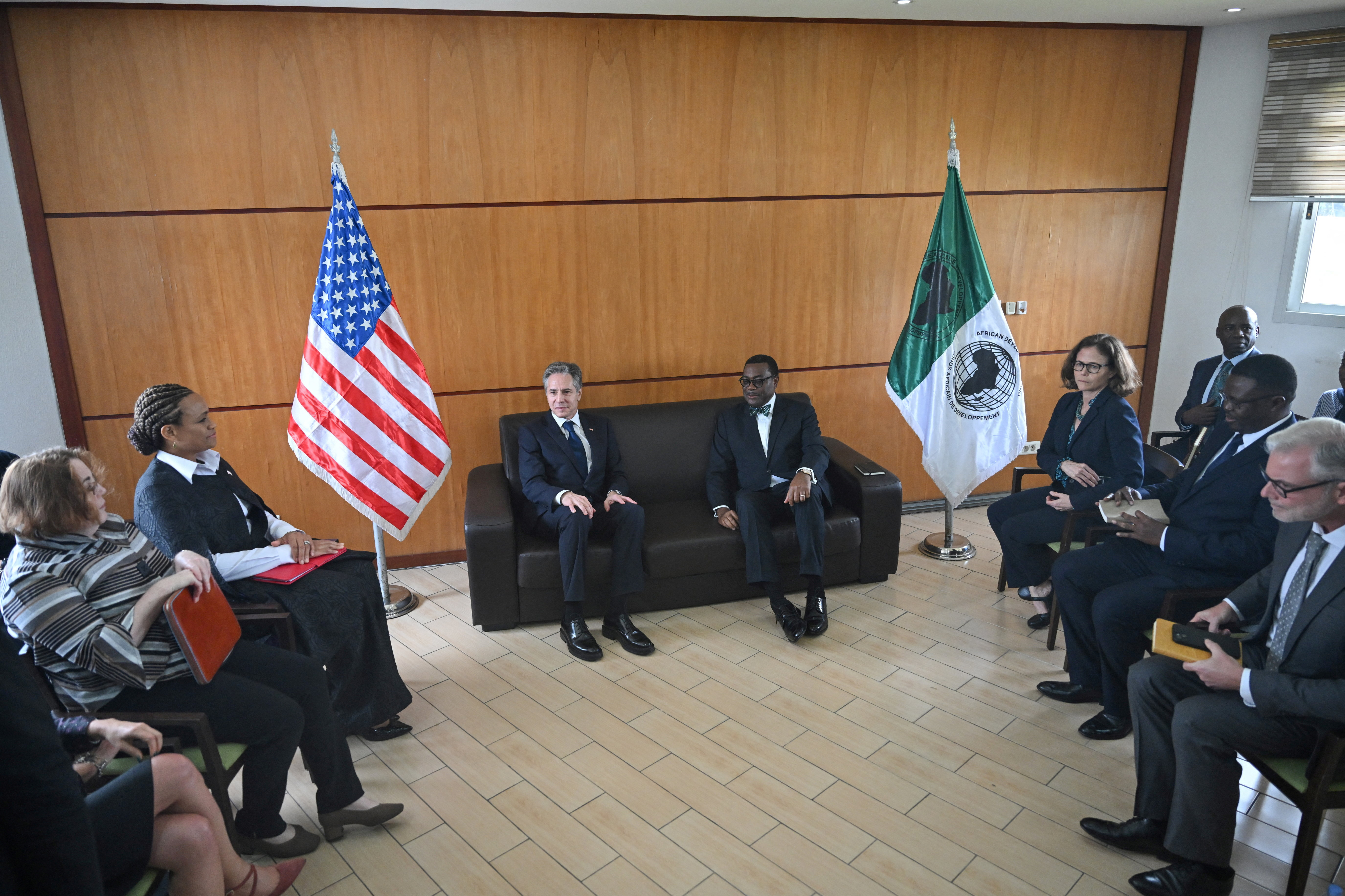 布林肯在下午在一個次區域水稻研究所會見了非洲開發銀行行長阿金沃米·阿德西納。他計劃在晚上飛往尼日利亞。