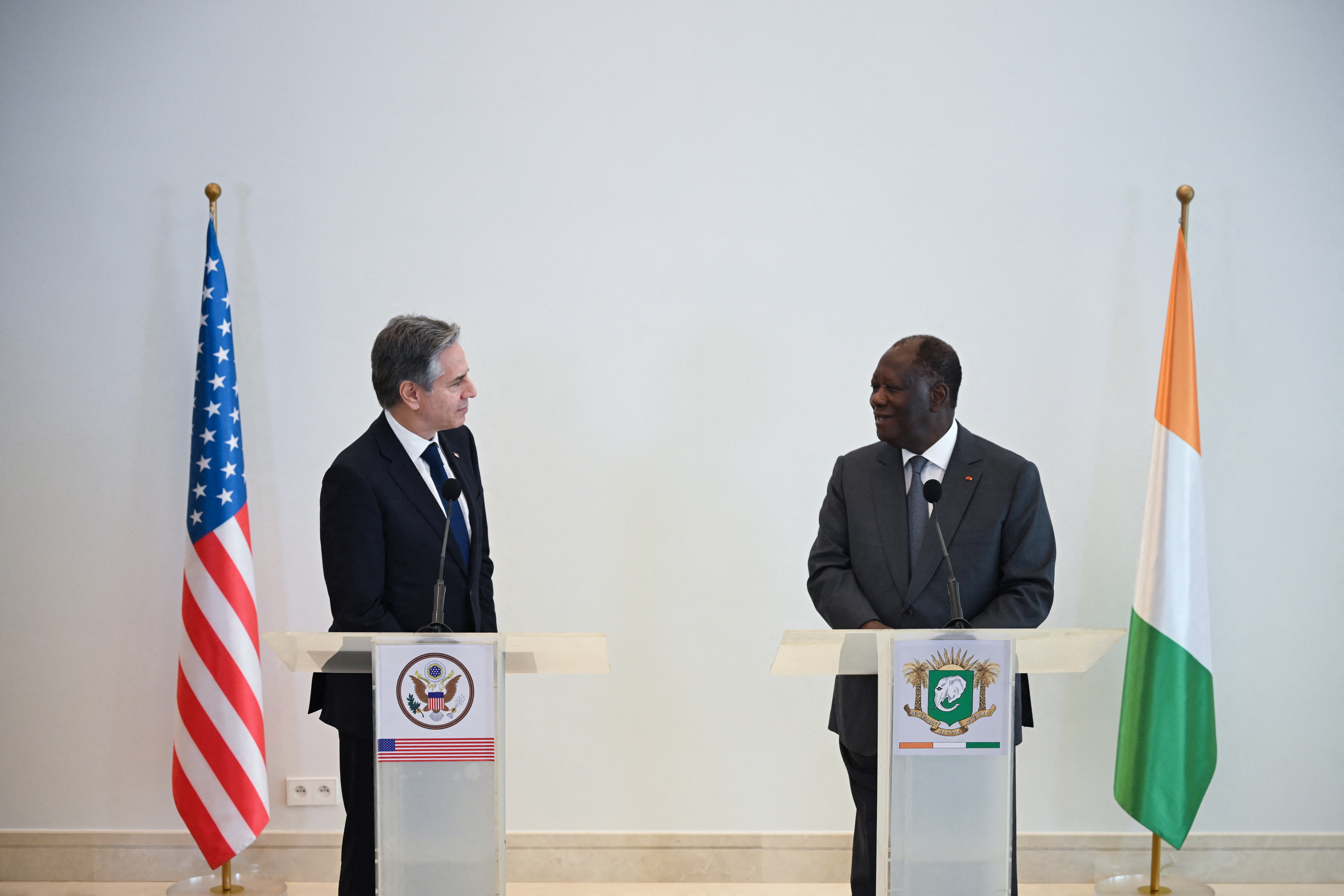 布林肯説:“我們花了很多時間討論共同的安全挑戰。我們讚賞象牙海岸在打擊極端主義和暴力方面的領導作用。”
