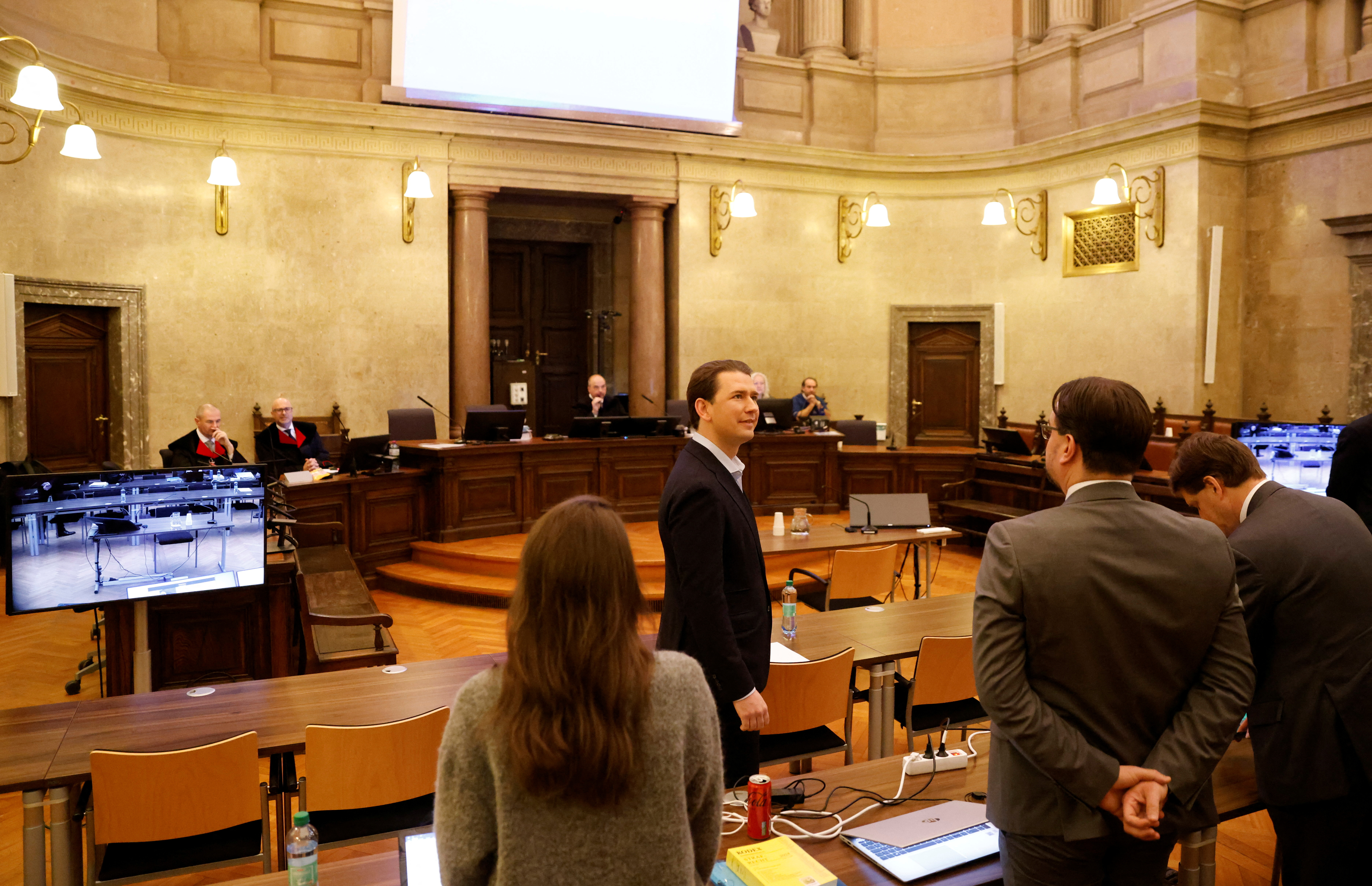 庫爾茨身穿深色西裝和淺藍色襯衫出現在維也納法院,與之前一樣,當攝像機在庭審開始前進入法庭時,他仍然站着,而不是坐在為被告保留的位置上。