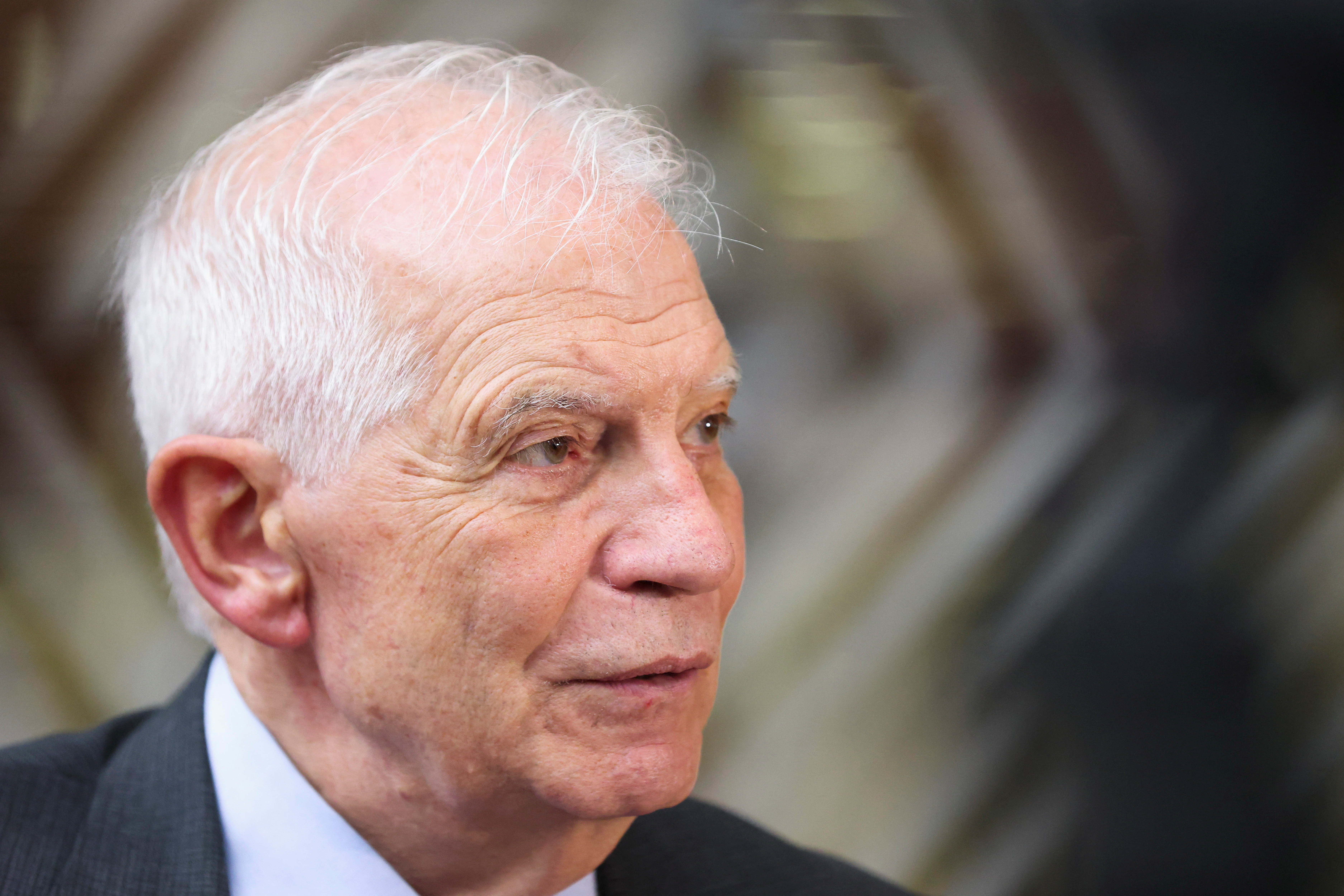歐盟外交政策負責人何塞普·博雷爾(Josep Borrell)在比利時布魯塞爾參加歐盟外長會議時對媒體發表講話,2024年3月18日。路透社/Johanna Geron 布魯塞爾,3月18日(路透社)- 歐盟外長週一原則上同意對以色列定居者實施制裁,因為他們襲擊了巴勒斯坦人在約旦河西岸,並對巴勒斯坦伊斯蘭組織哈馬斯的成員加強制裁。