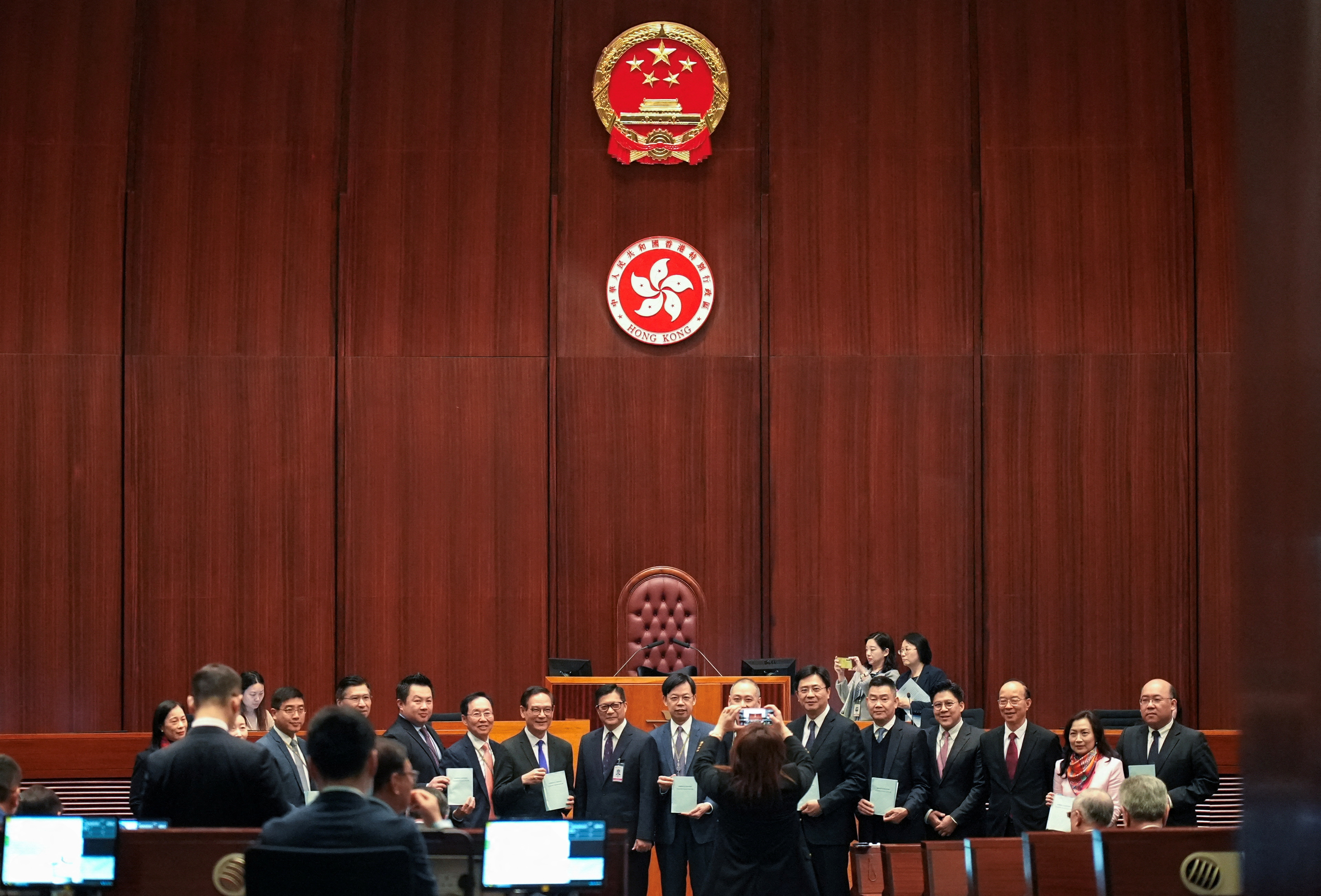 第1/2項:2024年3月19日,中國香港,中國香港立法會議員參加《維護國家安全法案》第二次審議,也被稱為《基本法第23條》,攝於香港,中國。路透社/周欣