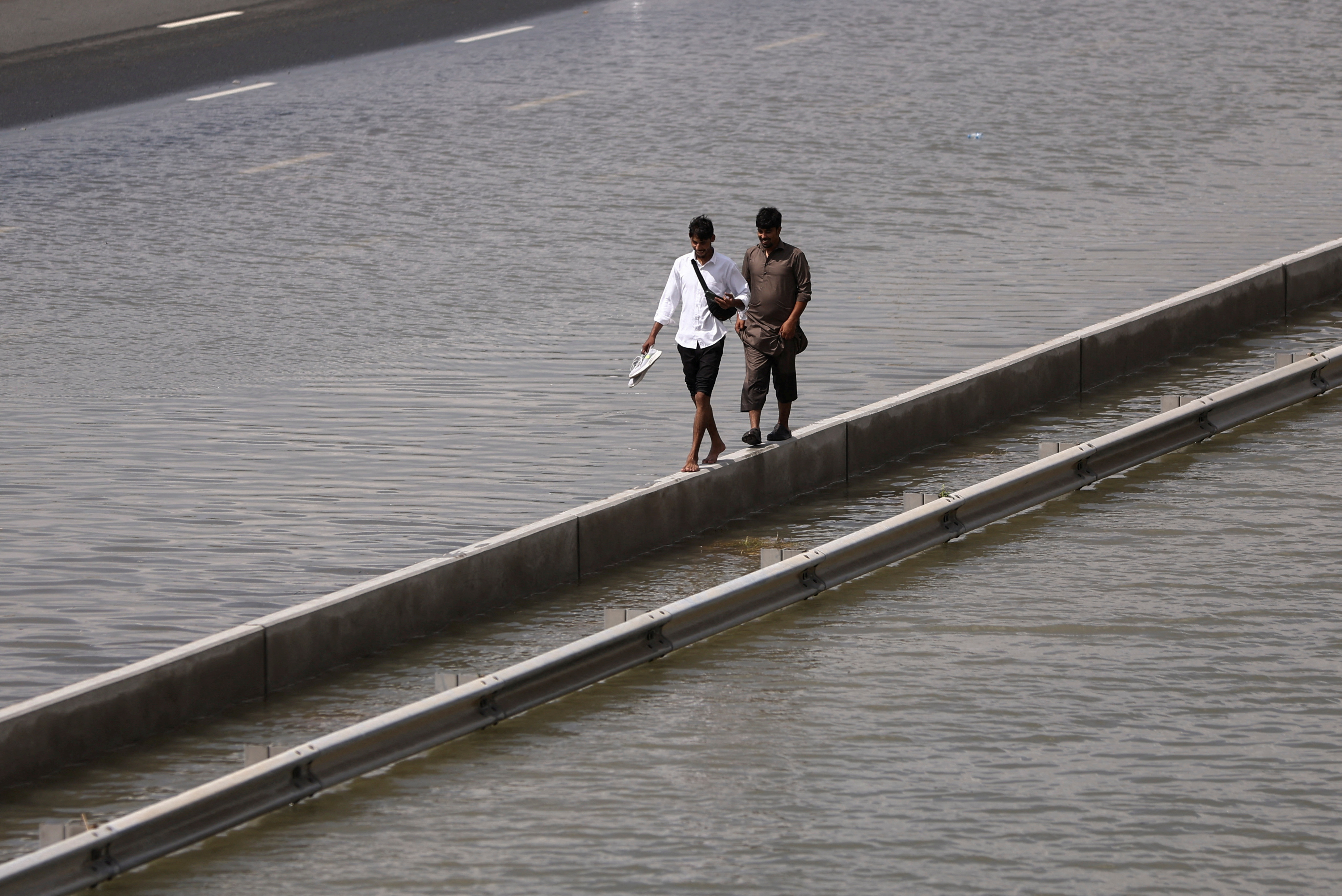 第1張圖片:2024年4月18日,迪拜,阿聯酋,人們在因暴雨而引起的洪水中行走。路透社/Amr Alfiky
